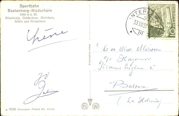 Beatenberg Sesselbahn Beatenberg postalisch gelaufen 1959 Alte Ansichtskarte Postkarte Elvigtle