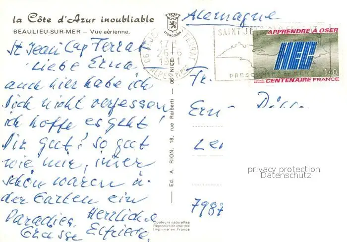 Beaulieu-sur-Mer Vue aérienne Beaulieu-sur-Mer postalisch gelaufen 1981 Erhaltung siehe scans [FriedD77] Frierer