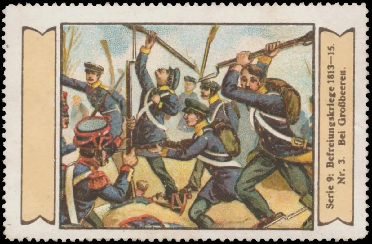 Serie 9: Befreiungskriege 1813-15, Nr. 3. Bei Grossbeeren, Größe/Zustand: 5x7 , guter Zustand, Original alte Reklamemarke die seinerzeit für die Werbung benutzt wurde