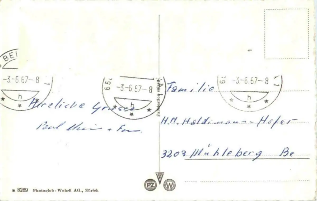 Danke. Alles Bestens. Können Sie mir allenfalls mitteilen, aus welchem Jahr die Postkarte stammt? Besten Dank.