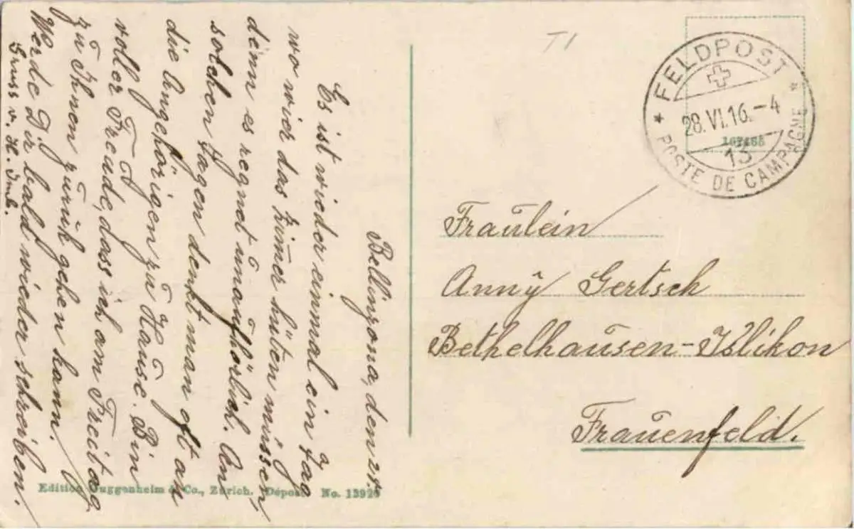 Danke. Alles Bestens. Können Sie mir allenfalls mitteilen, aus welchem Jahr die Postkarte stammt? Besten Dank.