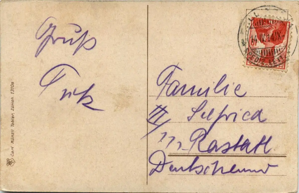 Danke. Alles Bestens. Können Sie mir allenfalls mitteilen, aus welchem Jahr die Postkarte stammt? Besten Dank.