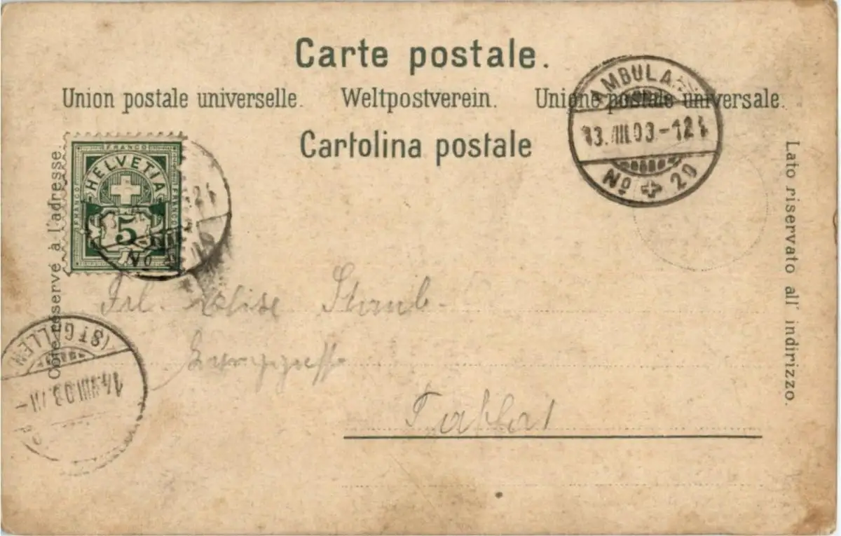 Danke. Alles Bestens. Können Sie mir allenfalls mitteilen, aus welchem Jahr die Postkarte stammt? Besten Dank.