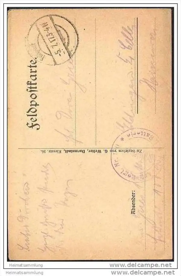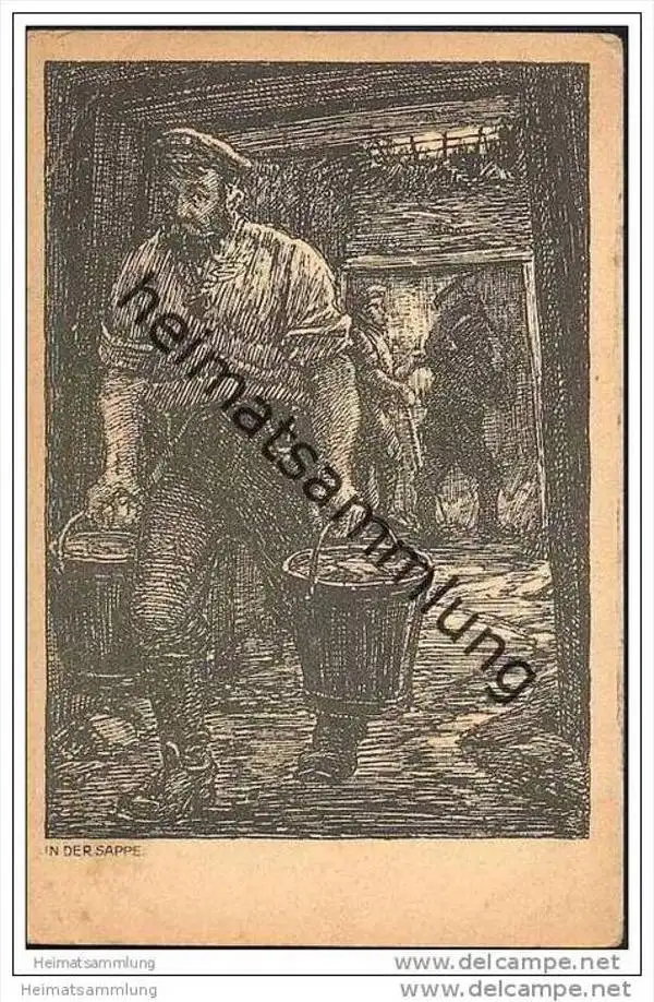 Bergbau - Federzeichnung - In der Sappe - Feldpost - G. Welter Darmstadt - Gebrauchsspuren - Eckknick oben links (G21299) gel. 1917