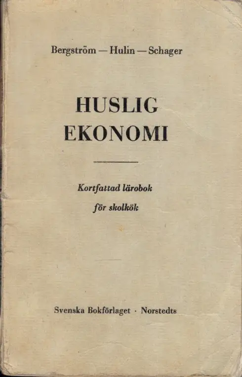 Huslig Ekonomi; Kortfattad Lärbok för Skolkök; Hauswirtschaft; Lehrbuch für Schulküche; Gertrud Bergström; Gunhild Hulin; Ingehorg Schager; Schulbuch