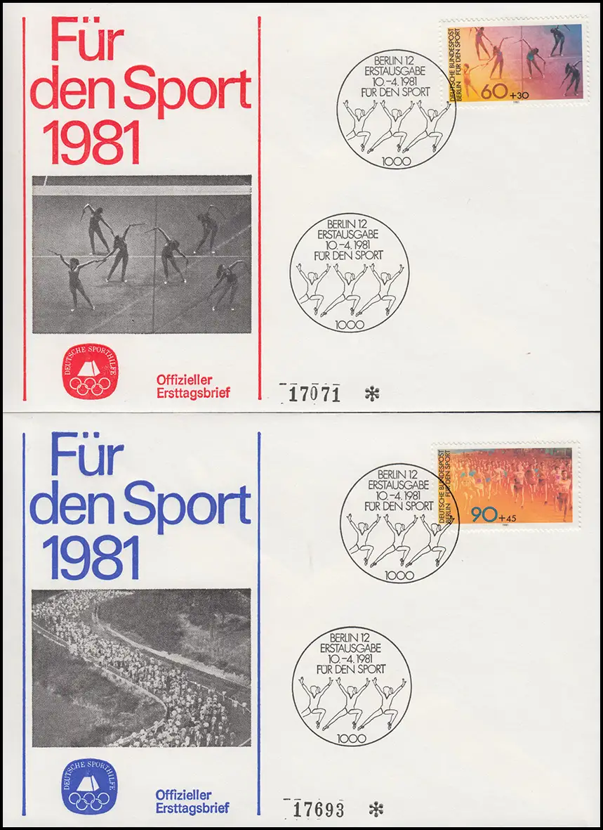 Berlin 645-646 Sporthilfe 1981: Gymnastik und Volkslauf auf 2 amtl. FDC