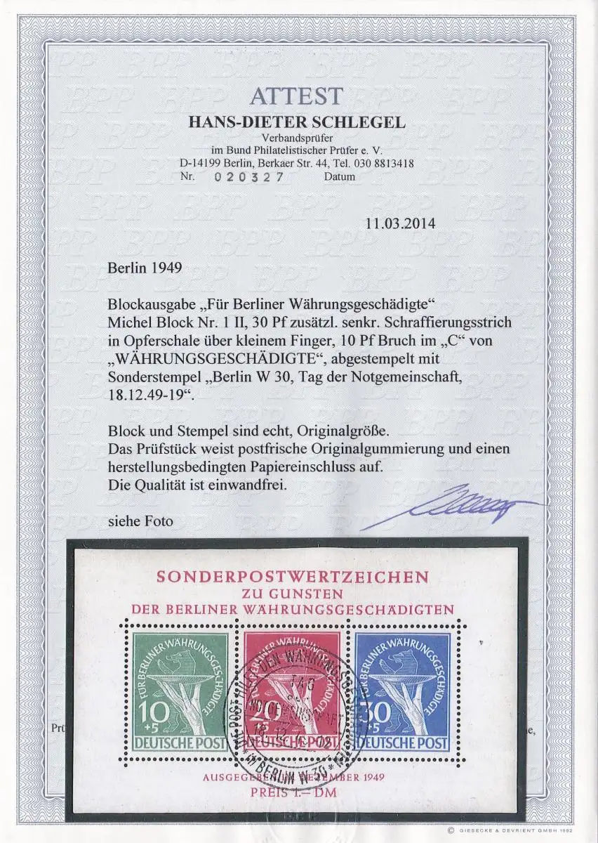 Berlin: Block 1 II, gestempelt, BPP Fotoattest