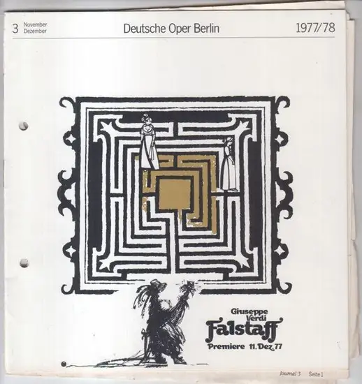 21,5 x 20 cm. Originales Programmheft mit 12 Seiten, gefolgt von 8 Seiten Journal, jeweils reich s/w bebildert, zuletzt 10 Blatt Anzeigen mit zahlreichen s/w Porträtfotos, zwischengebunden ein Doppelblatt Programmfolge zum Ballettabend am 8. Dezember 1977. Das Heft ist am linken Rand durchgehend gelocht, einige Seiten sind teils lose und leicht randlädiert. Ansonsten in noch gutem Zustand