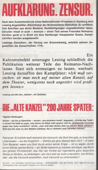 Autor: Berlin, Freie Volksbühne. - Lessing, Gotthold Ephraim