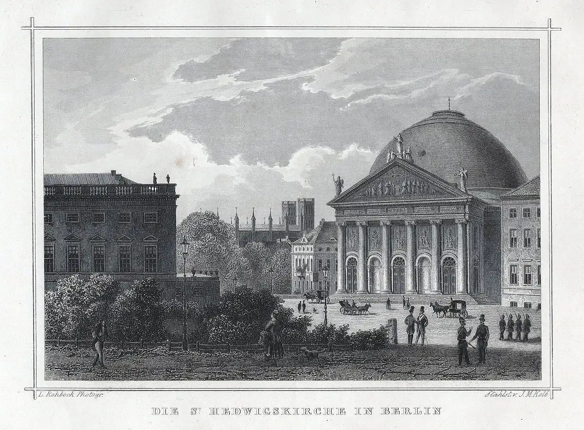 Berlin: Hedwigskirche am Bebelplatz. Echter Stahlstich, Kolb um 1880