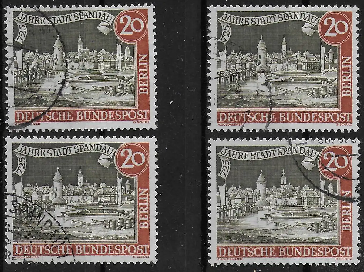 Berlin: MiNr. 159 I + II + III + V, gestempelt, 4x Plattenfehler
