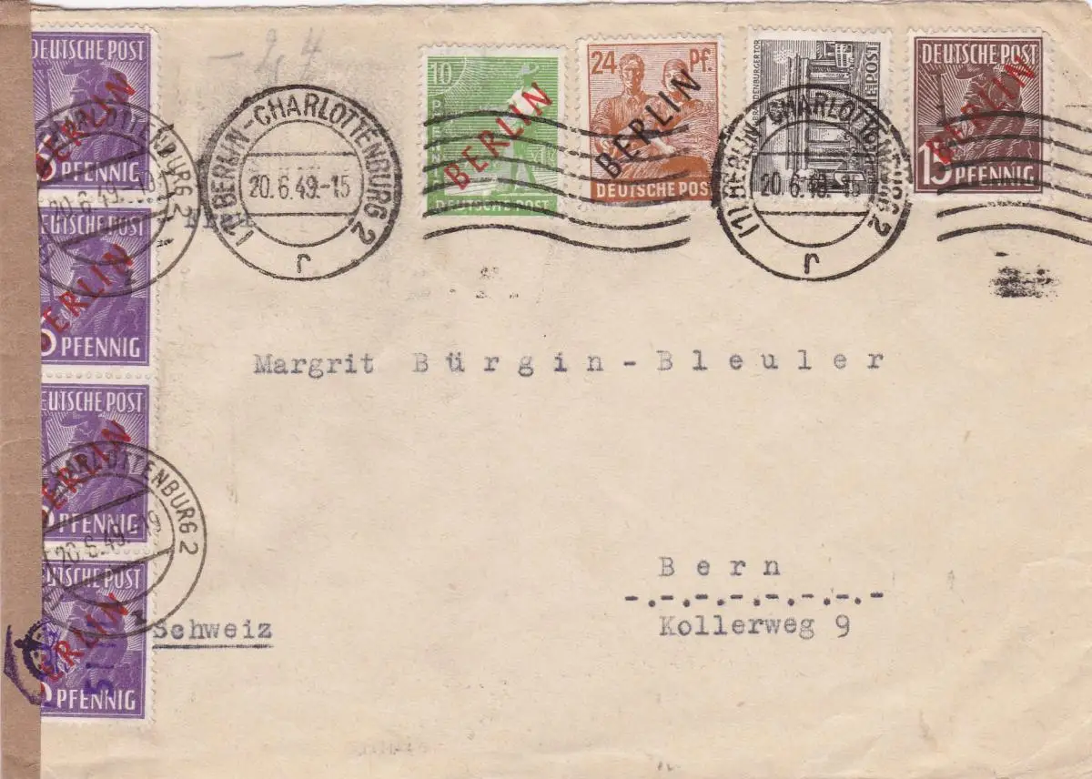 Berlin: MiNr. 9,22, 24,25,42 Bedarfsbrief in die Schweiz 1949