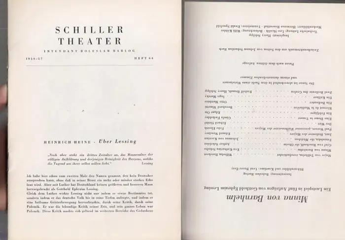 Autor: Berlin Schiller Theater. - Boleslaw Barlog (Intendanz / Hrsg.). - G. E. Lessing.