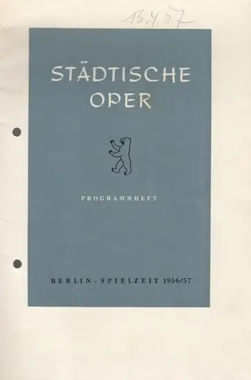 Berlin. Städtische Oper . Musik: Mozart, W. A. - Text: Schikaneder, E: Die Zauberflöte. Programmheft. Spielzeit 1956 / 1957. Intendant: Ebert, Carl. Musikalische Leitung: Rother, Artur. Inszenierung: Rennert, Günther. Bühne: Maximowna, Ita. Chöre: Lüdde