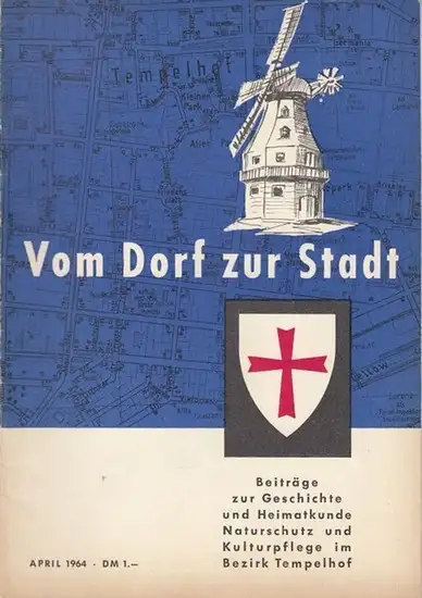 Titel: Vom Dorf zur Stadt. April 1964. - Beiträge zur Geschichte und Heimatkunde, Naturschutz und Kulturpflege im Bezirk Tempelhof. - Aus dem Inhalt: Sorge um eine große Stadt / Aus der Urzeit unserer Heimat / Ein Ausflug zu Kreideweiß in Tempelhof / Marienfelde, die Keimzelle der Industrie im Bezirk
