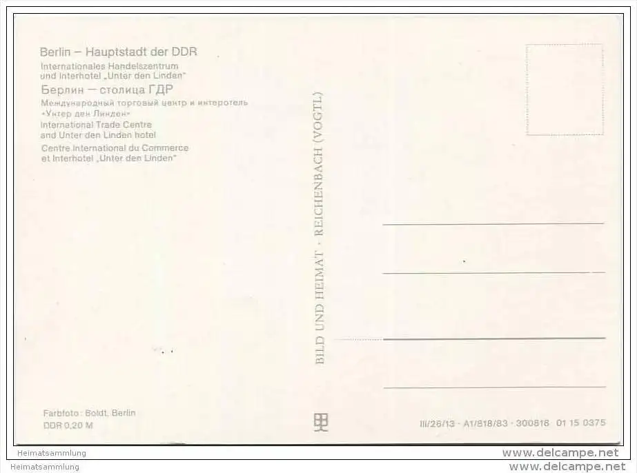 Berlin - Unter den Linden - Internationales Handelszentrum und Interhotel Unter den Linden - AK Grossformat (G25103)