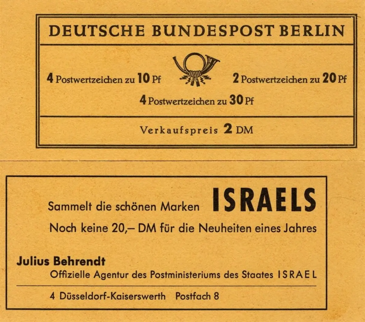 • MichSeite Berlin (West): MH MiNr. 5 b, 13.12.1966, "Brandenburger Tor", postfrisch Beschreibung \nAusgabeland: Berlin (West) \nAusgabeanlass: Briefmarkenausgabe "Brandenburger Tor" Katalognummer: MH MiNr. 5 a Ausgabedatum: 13.12.1966 Nominale: Wert zu 0,10 DM (4 x), 0,20 DM (2 x), 0,30 DM (4 x) \nTyp: Reklame b "Behrendt" \nErhaltung: postfrisch \nHinweis: -