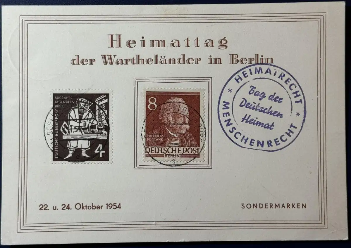 Berlin, (West),Sonderpostkarte,Heimattag, der, Wartheländer,1954
