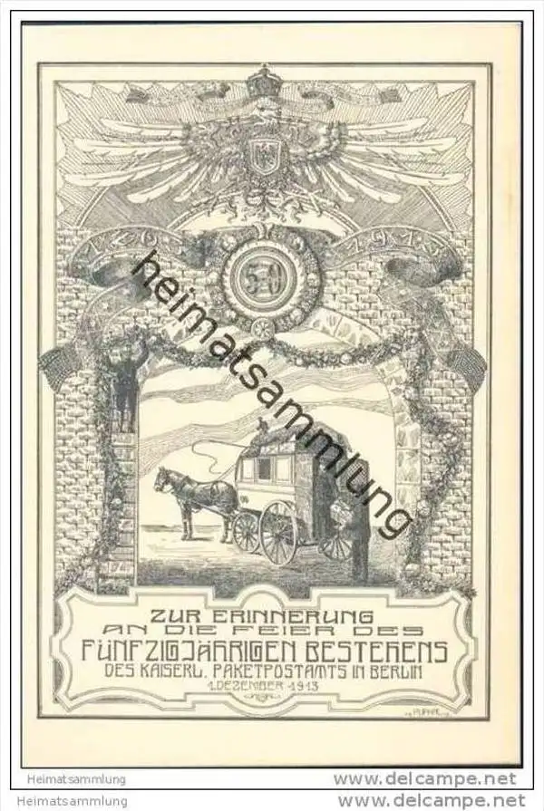 Berlin - Zur Erinnerung an die Feier des fünfzigjährigen Bestehens des kaiserlichen Paketpostamtes in Berlin - 1.Dezember 1913 - Künstlerkarte signiert Puphal (E493) *