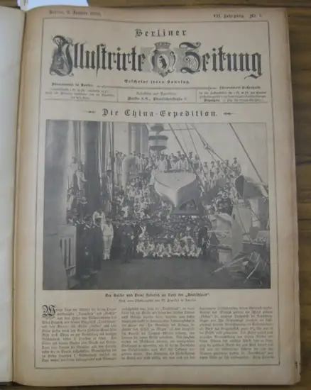enthalten sind literarische, politische und gesellschaftliche Texte, Fortsetzungstexte, Rätsel u. a. --- Beispiele aus dem Inhalt: China-Expedition / Heinrich-Heine-Denkmal für New-York / Brand der Borsigmühle in Berlin / Fernsprechwesen / Neues von deutschen Werften / Sturm auf Helgoland / Prozeß Emile Zola (Nr. 8, 9, Dreyfus-Affäre ) / Grubeninglück auf der Zeche 'Karolinenglück' / Henrik Ibsen zum 70. Geburtstage / Bilder aus Kiautschou / Spanisch-amerikanischer Krieg / Bilder von Helgoland / Untergang der Bourgogne / Bismarck-Gedenknummer (Nr. 32) / Die Ermordung der Kaiserin (Elisabeth) von Österreich ( Sissi ! ) / Prozeß Picquart-Leblois (Dreyfus-Affäre) / Bilder aus Syrien und Palästina. --- Porto ins Nicht-EU-Ausland ist deutlich teurer, bitte anfragen ! --- Postage to non-EU countries is significantly more expensive, please ask! --- Les frais de port vers les pays non membres de l'UE sont nettement plus chers, veuillez demander !.