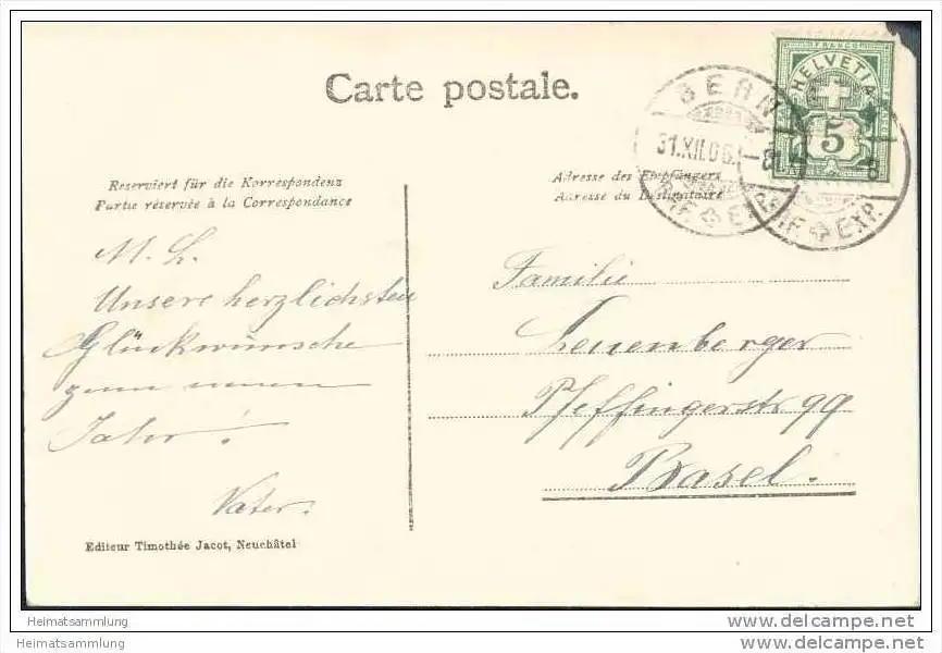 Bern - Neujahr 1907 - Verlag Timothee Jacot Neuchatel - Fehlstelle oben links (E29261) gel. 1906