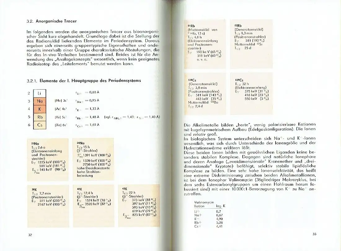 sehr guter Zustand, geringe Gebrauchs- und Alterungsspuren, Einleitung - Radiochemische Grundlagen - Charakterisierung von Radionukliden und radioaktiven Präparaten - Herstellung der Radionuklide - Stellung der Radionuklide im Periodensystem der Elemente - Das Radiotracermolekül - Molekültypen - Anorganische Tracer - Elemente der I. Hauptgruppe des Periodensystems - Elemente der II. Hauptgruppe - Elemente der WB-Gruppe - Lanthaniden - Übergangselemente (Tc, Ru, Cr) - Gase - Organische Radiotracer - Halogensubstitution - Selensubstitution - Tellursubstitution - Arsensubstitution - Quecksilberorganische Verbindungen - Response - Applikationsarten - Bioverteilung von Radiotracern - Verteilung in Körperflüssigkeiten - Elimination - Mechanismen spezifischer Lokalisation - Osteotrope - 99m - Tc-Radiotracer - Regionale Stoffwechselvorgänge und Enzyminhibitoren als Radiotracer - Rezeptorbindende Radiotracer - Antikörper als Radiotracer - Stichwortverzeichnis, kartoniert, ca. 15 x 21, 126 Seiten mit zahlreichen Bildern