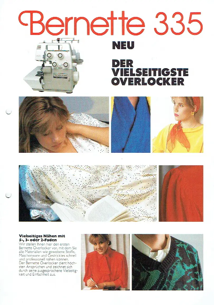 guter bis sehr guter Zustand, geringe Gebrauchs- und Alterungsspuren: gelocht, Nähmaschinen-Werbung, der Prospekt stellt das Modell mit seinen Einsatzmöglichkeiten und den technischen Daten vor, Papier, ca. 21 x 29,5, 4 Seiten mit zahlreichen Bildern