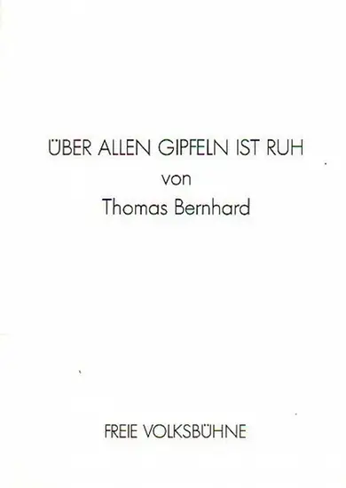 Bernhard, Thomas: Programm der Freien Volksbühne, Berlin zu: Über allen Gipfeln ist Ruh. Inszenierung: Kurt Hübner. Bühnenbild: Raimund Bauer. Kostüme: Caritas de Wit. Darsteller: Ernst Schröder, Elfriede Kuzmany, Dietrich Mattausch, Christine Prober, Rai