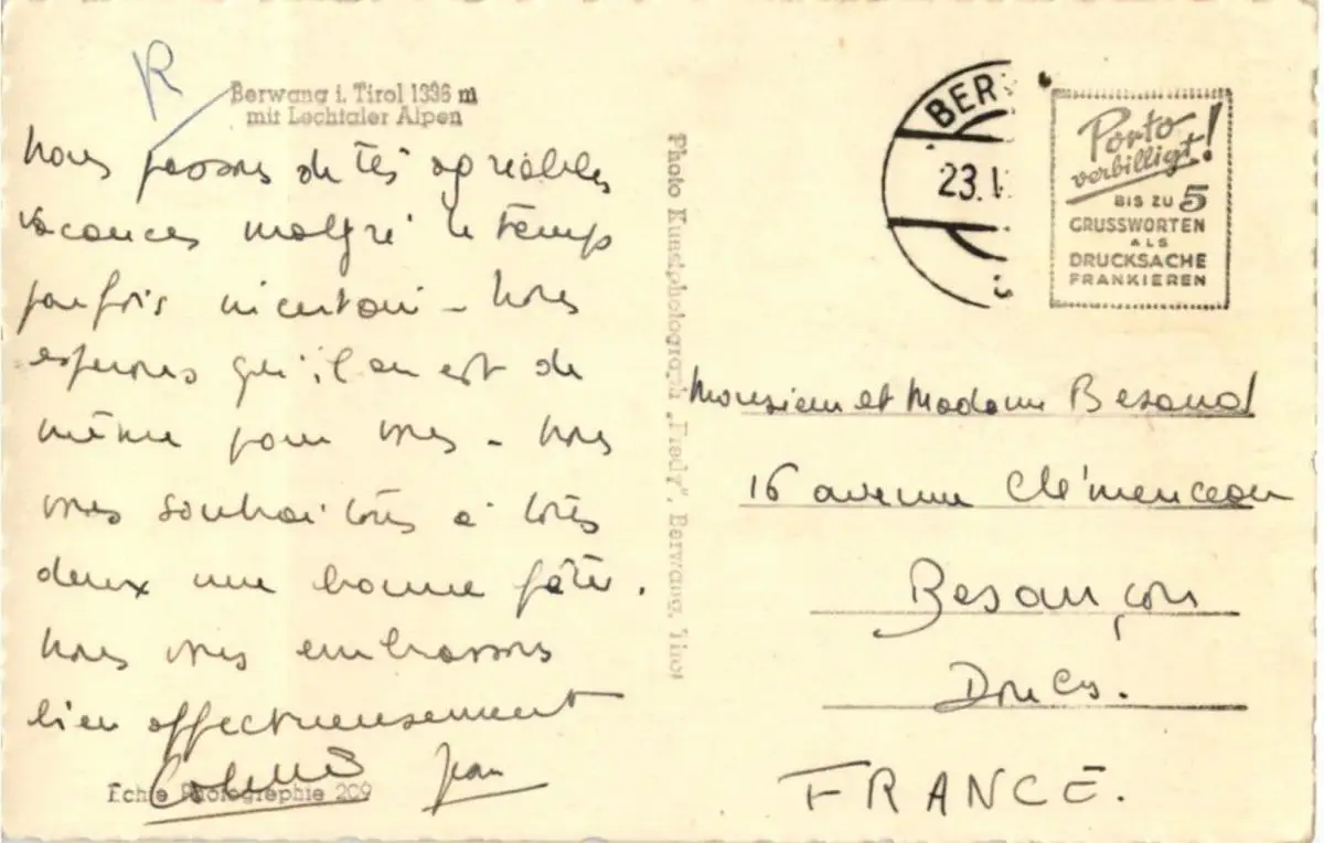 Danke. Alles Bestens. Können Sie mir allenfalls mitteilen, aus welchem Jahr die Postkarte stammt? Besten Dank.