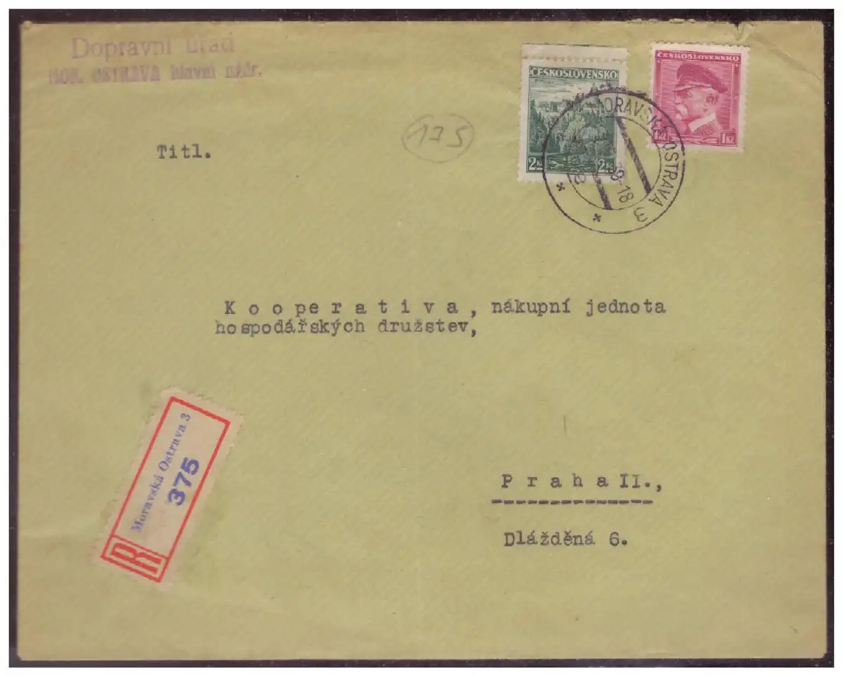 BM (007773) Einschreiben Mitläufer von Ostrava nach Prag kein ANK Stempel!!