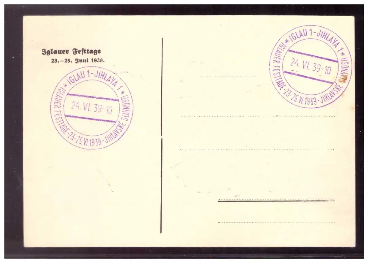 Böhmen u. Mähren (009703) Postkarte mit Motiv zu den Iglauer Festtagen, Iglau, 24.05.1939, mit Sonderstempel Iglauer