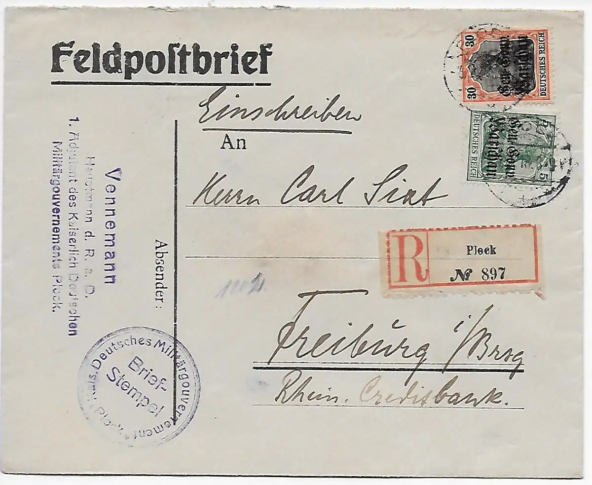 Besetzung I. WK Polen: Feldpostbrief Plock nach Freiburg 1918