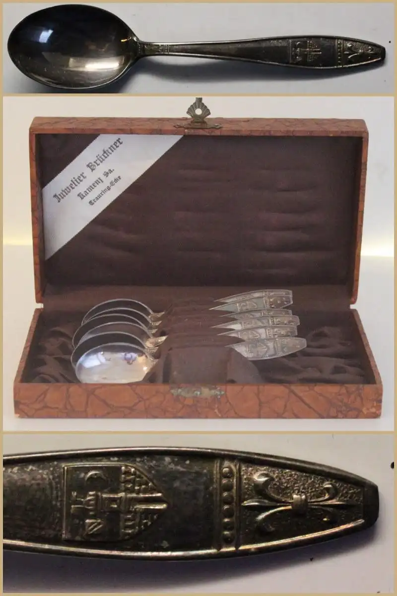 Bestecke mit unterschiedlichen geringen Gebrauchsspuren, teils etwas angelaufen und leicht Kratzer. Lieferung mit Besteckkasten.