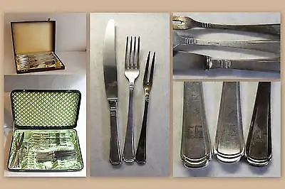 Besteck teils angelaufen und mit Gravur "E.G.". Gepunzt "Wenz-Bestecke 90". Kästen nur Beigabe.