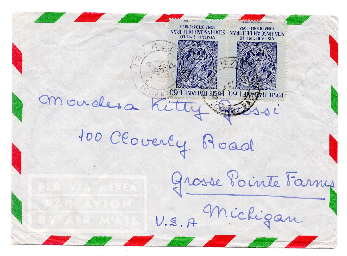 Umschlag - Besuch des Schahs von Persien Lire 60 Nr. 847 zwei Exemplare auf Luftumschlag in die USA am 24.9.59 - im Tarif Cod. 360/17
