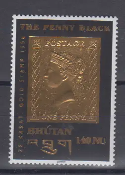 Bhutan " Goldbriefmarke " Abb. One Penny von England MiNo. 1632 ** . Motiv Marke auf Marke und kaum zu finden
