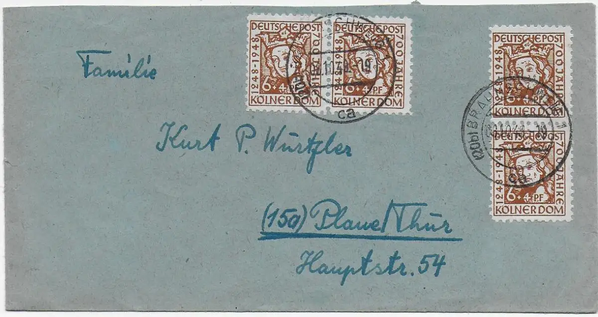 BiZone: MiNr. 69 MeF von Braunschweig nach Plaue/Thüringen