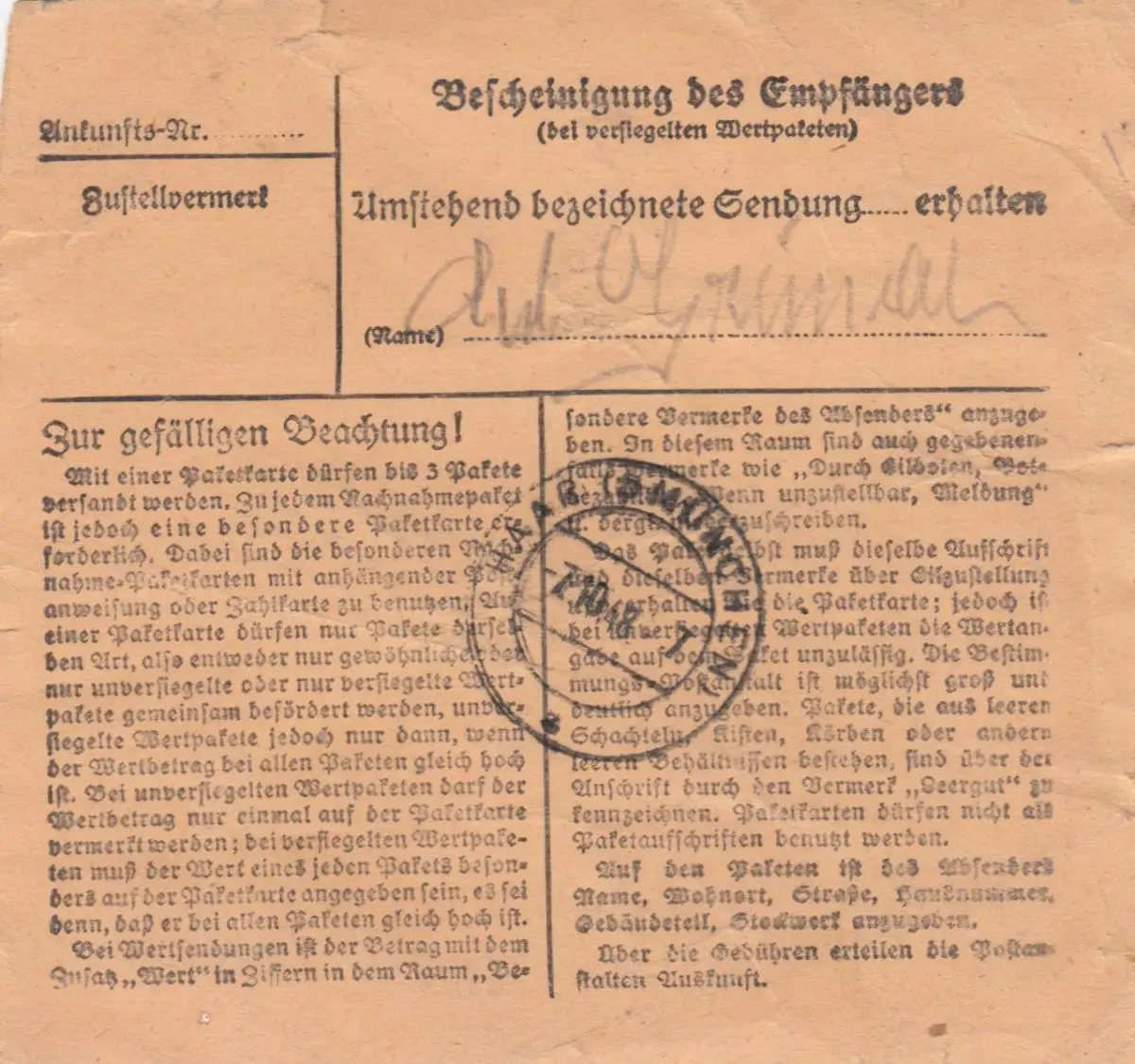 BiZone Paketkarte 1948: Dortmund-Bövinghausen nach Haar