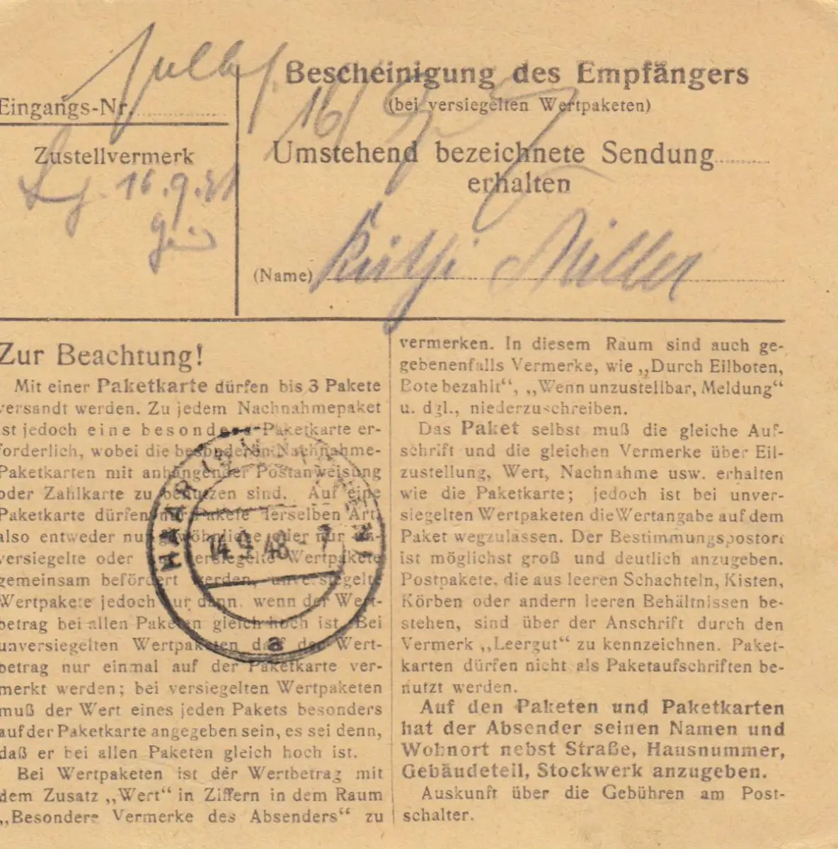 BiZone Paketkarte 1948: Muschenried, Heinrichskirchen über Rötz nach Haar