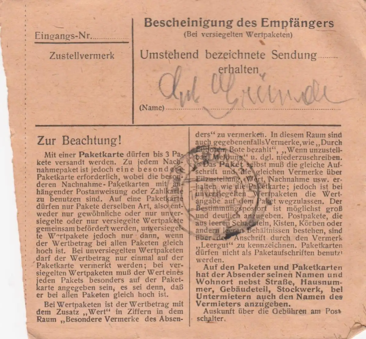 BiZone Paketkarte 1948: Unterlind nach Haar, Pflegerin