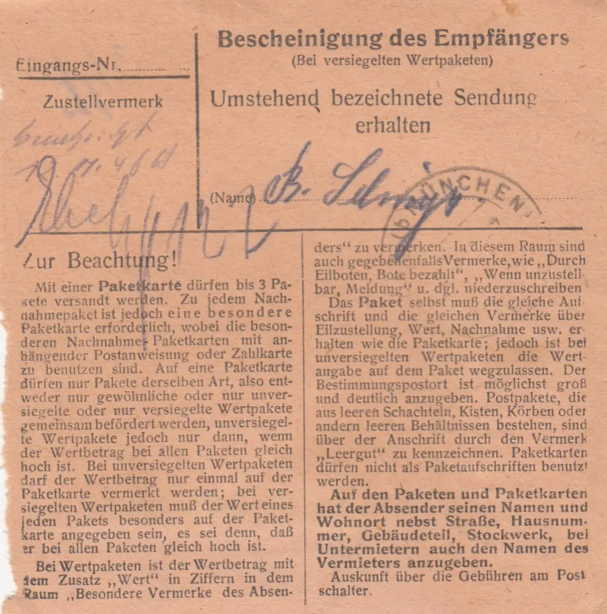 BiZone Paketkarte: Windsbach Hegersbach nach Haar, Wertkarte