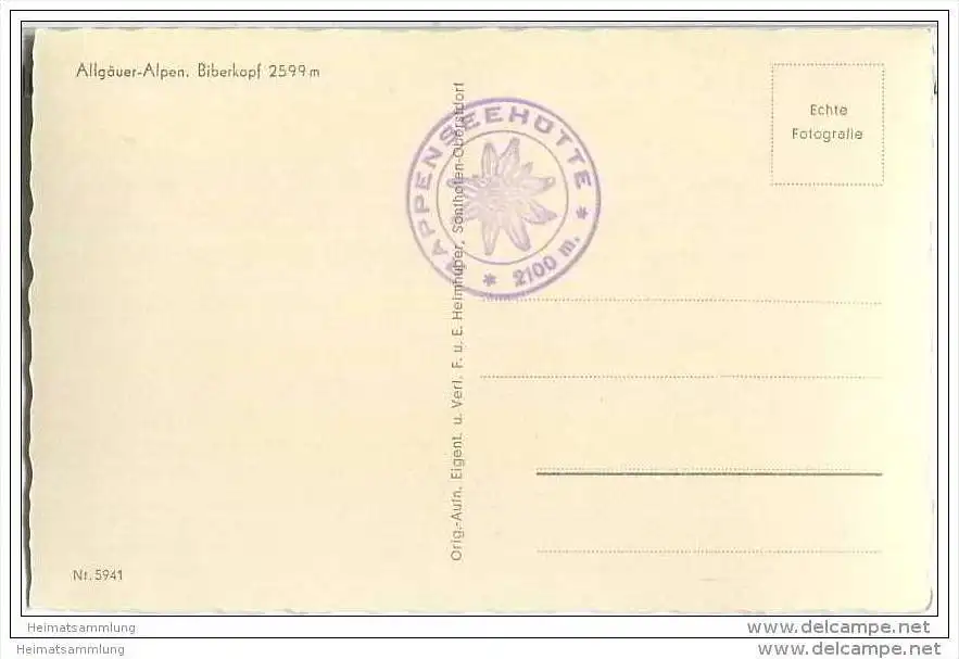 Biberkopf - Foto-AK - Verlag F. und E. Heimhuber Sonthofen (G27534) *