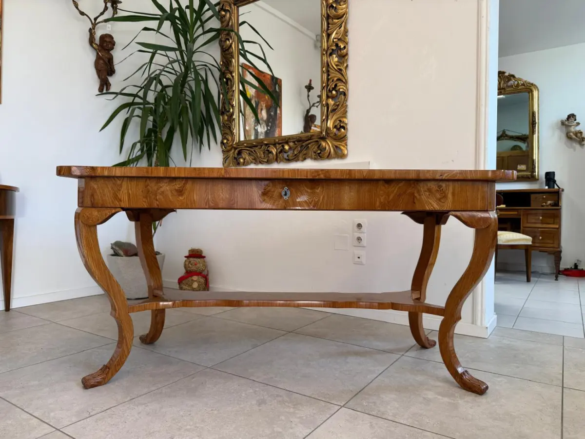 Originaler Nussholz Furnierter Biedermeier Refektoriumtisch