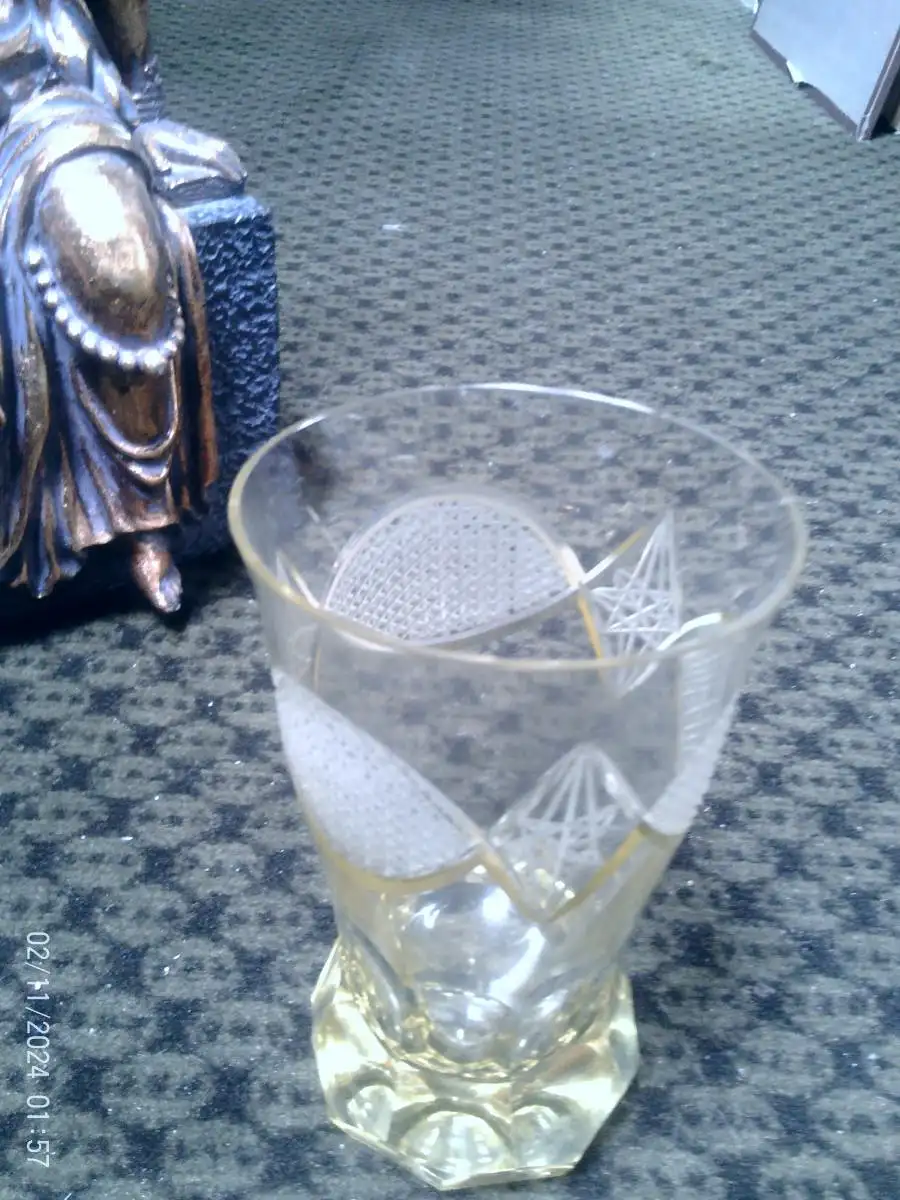Biedermeier um 1880 Becherglas Zitrinfarben Kristallglas Wellenschliff Stand 10 Fach facetiert