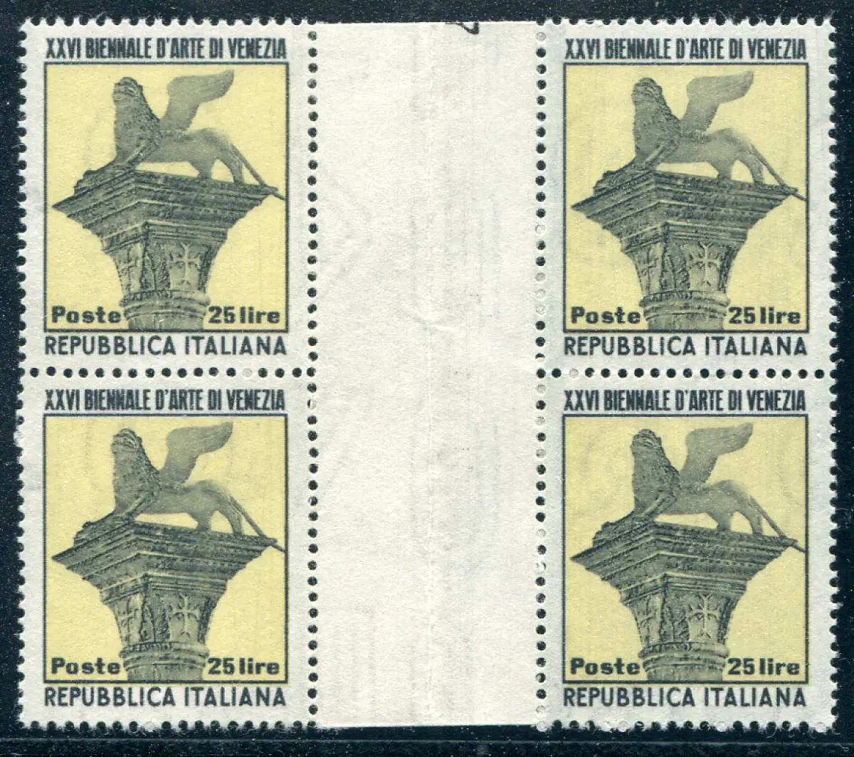Biennale Venedig Viererblock getrennt in der Mitte durch Zwischenraum Integra Gomma - MHN - - Biennale di Venezia Nr. 692 im Viererblock getrennt in der Mitte durch Gruppenzwischenraum - Kat. euro 60 Cod. 346/14