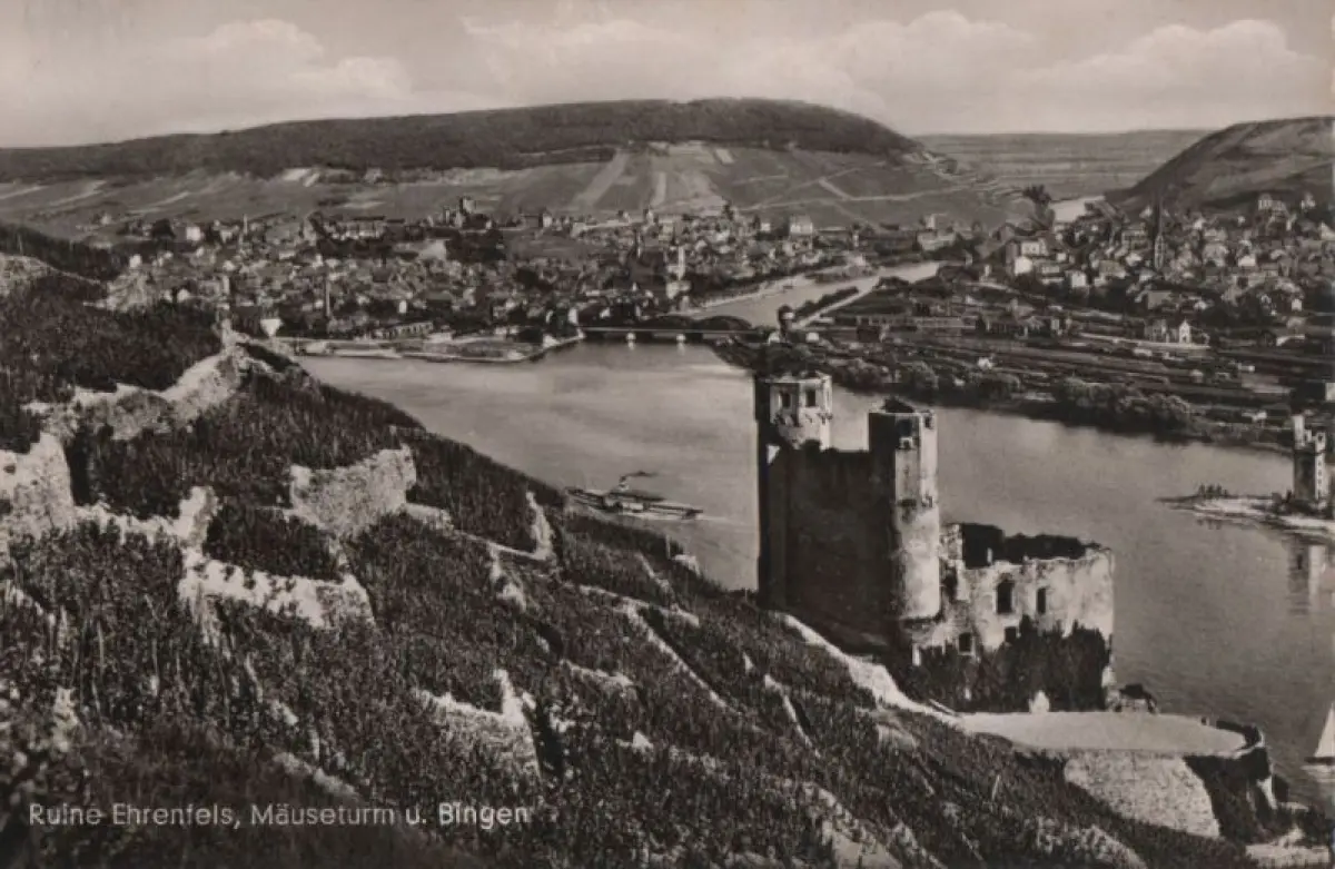 Bingen - mit Ruine Ehrenfels - 1955
