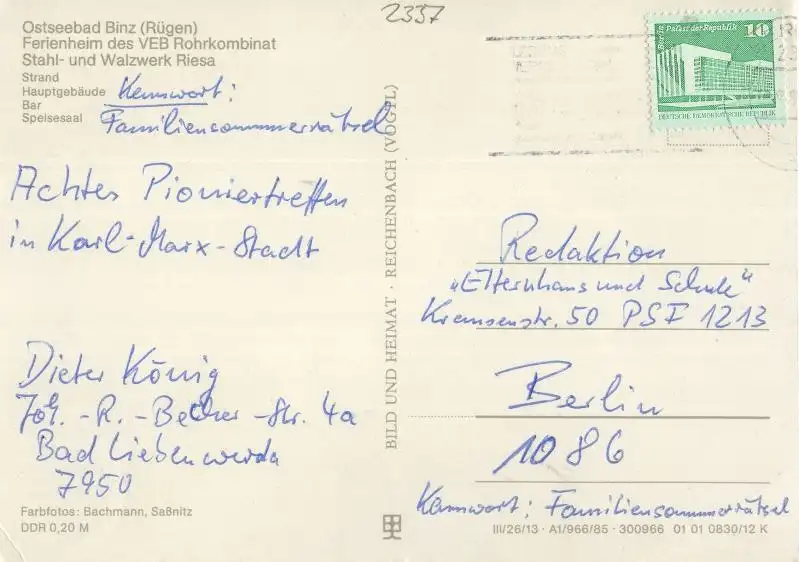 Postleitzahl:18609 (neu) / O 2337 (alt)