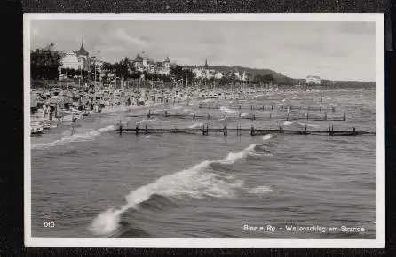 Binz. Wellenschlag am Strande - Gelaufen 1938. (NPLZ 18586)