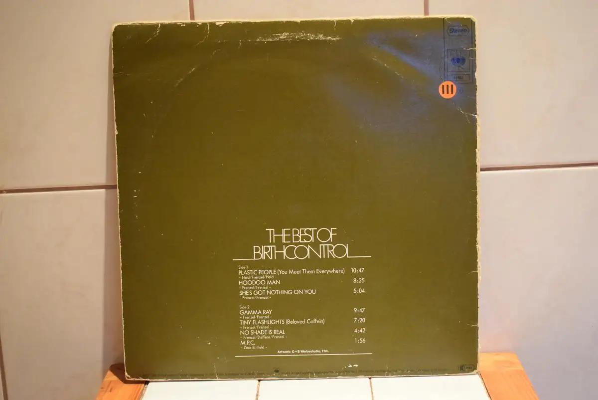 Cover mit starken umlaufenden Gebrauchspuren , auch auf den Flächen , Einrisse in allen Kanten, LP mit vielen feinen aber rein oberflächlichen Gebrauchspuren , spielt noch sehr gut .