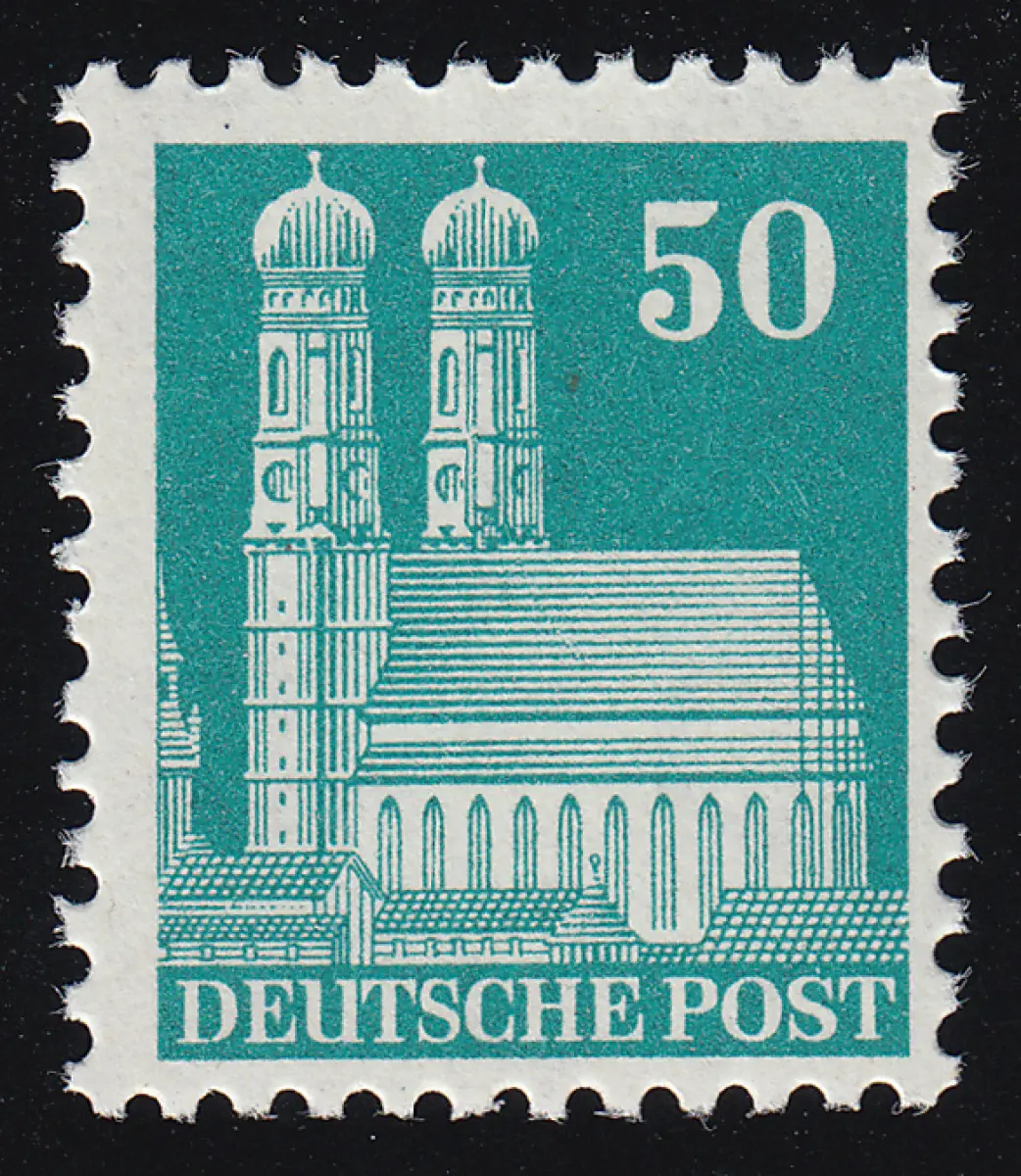Bizone 92 WF Bauten 50 Pf., blaugrün, weit gezähnt **